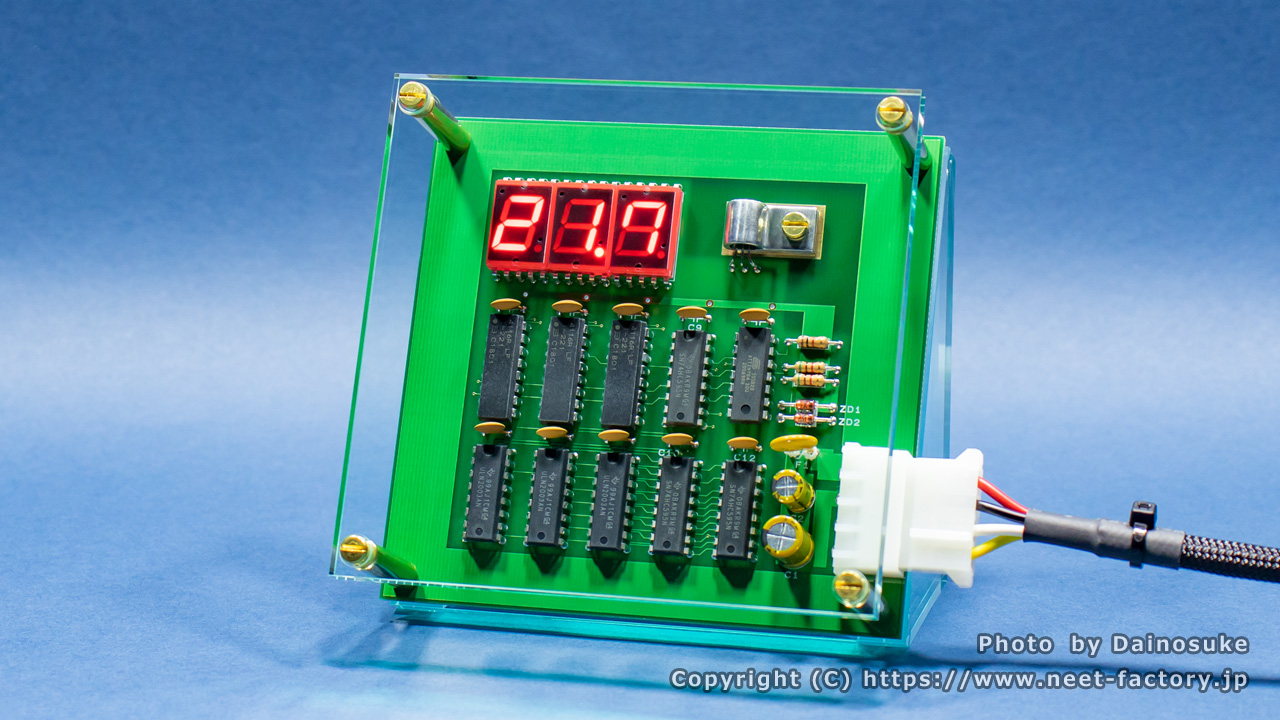 「伊達巻き型」と呼ばれるアルミのヒートシンククリップが美しく輝くデジタル温度計